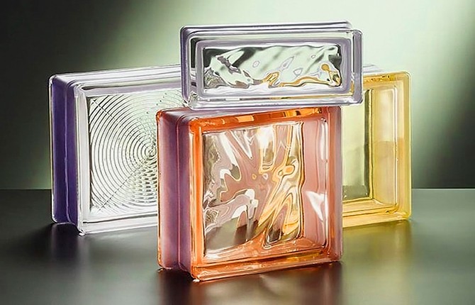 В продаже представлены виды стеклоблоков, различающиеся по форме, размерам, весу, цвету, присутствию дополнительных декоративных элементов. Как строительный материал они обладают массой преимуществ перед другими видами отделки: