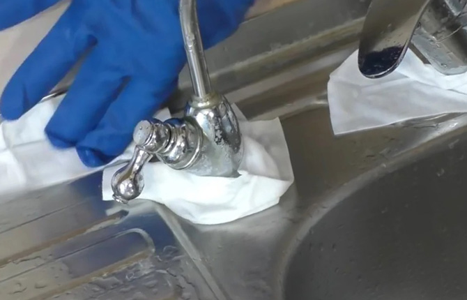 Способ прекрасно справляется с загрязнениями на чугунных и эмалированных ваннах, и даже на алюминиевых кухонных раковинах. На акриловых поверхностях следует соблюдать осторожность, чтобы уксусом не повредить защитный слой.